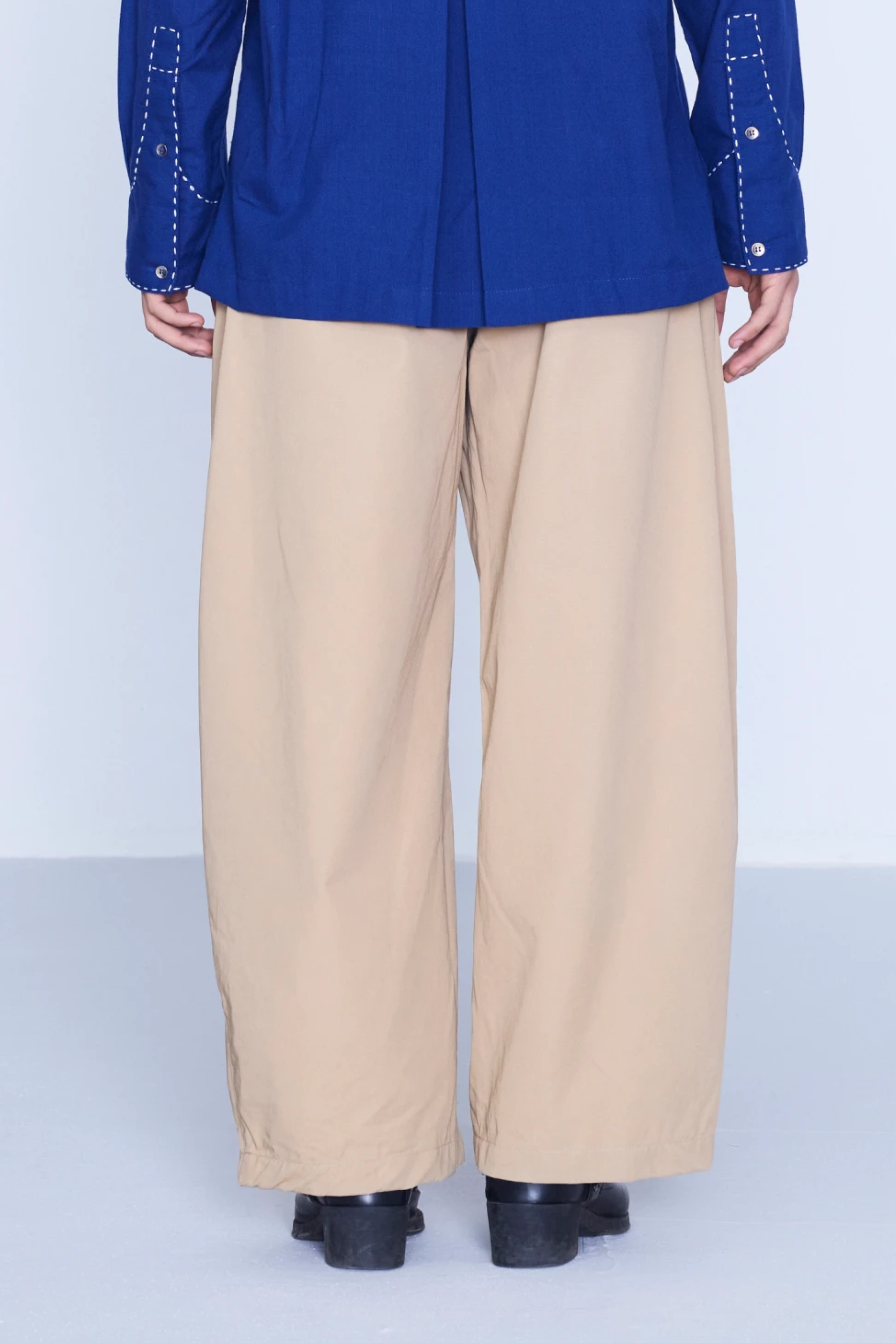 Made from cotton twill fabric, the Trousers feature front and back pleats that create a structured, box fit. The pleat details are a nod to Japanese carpentry, blending functional design with precision, offering both comfort and craftsmanship in every fold