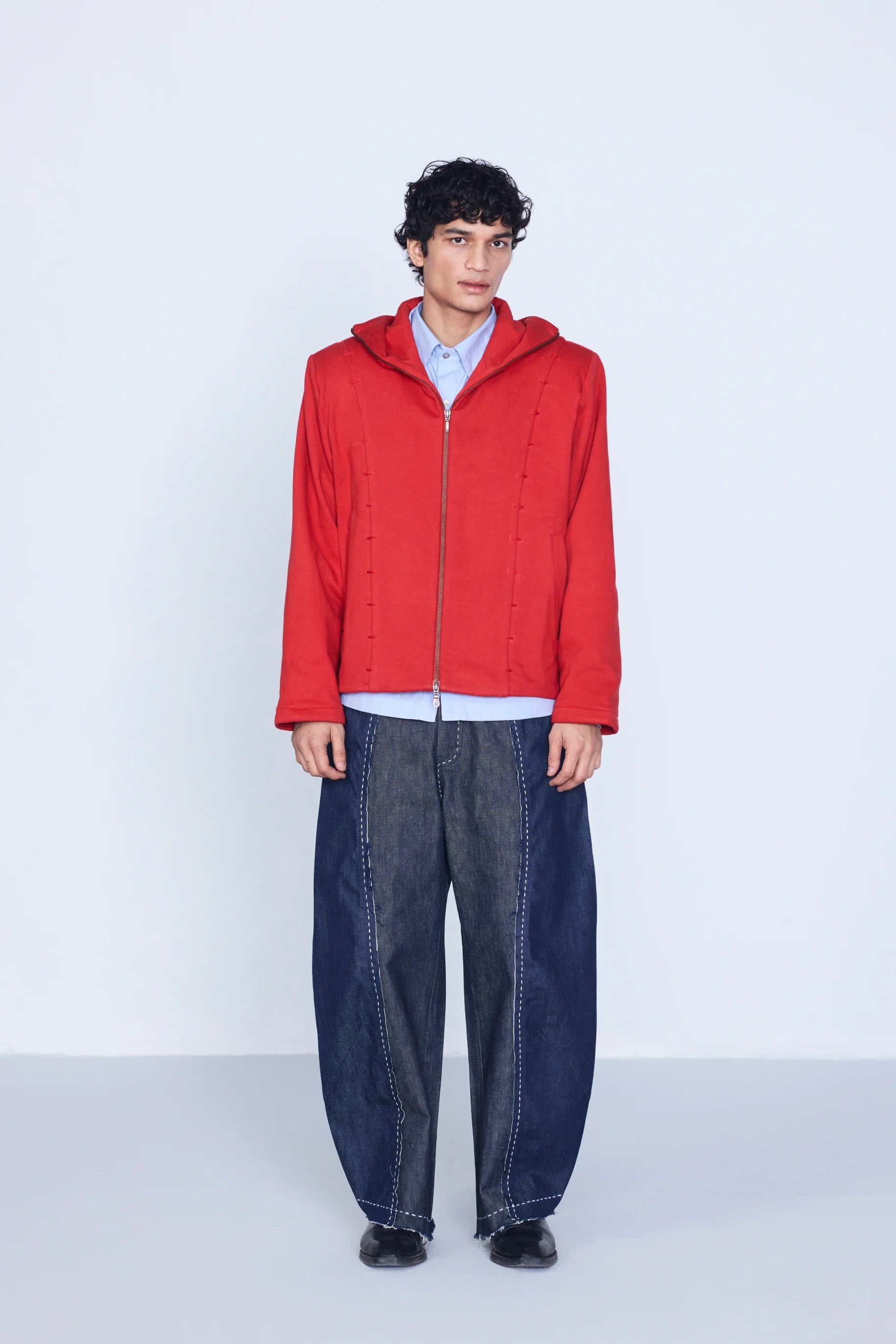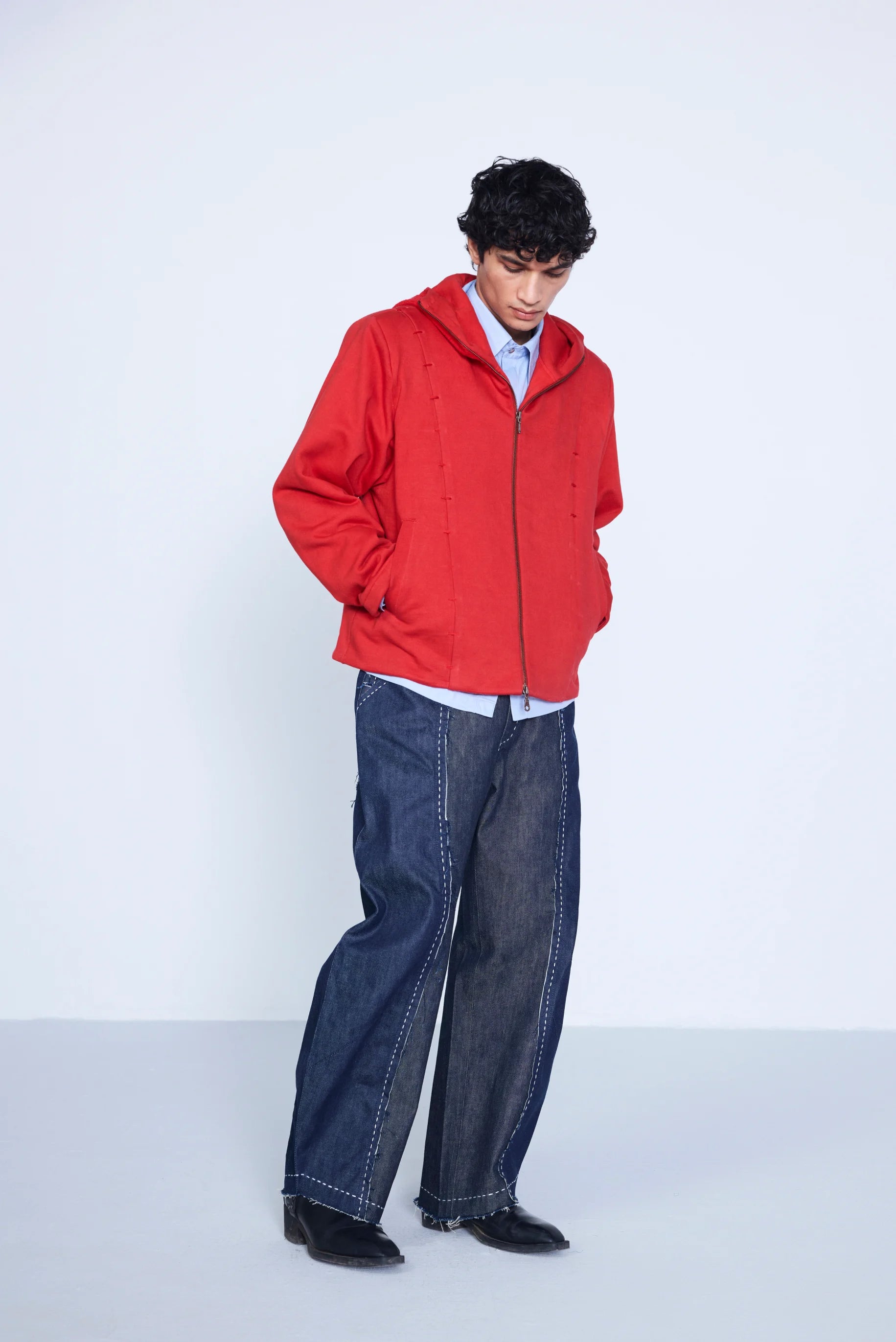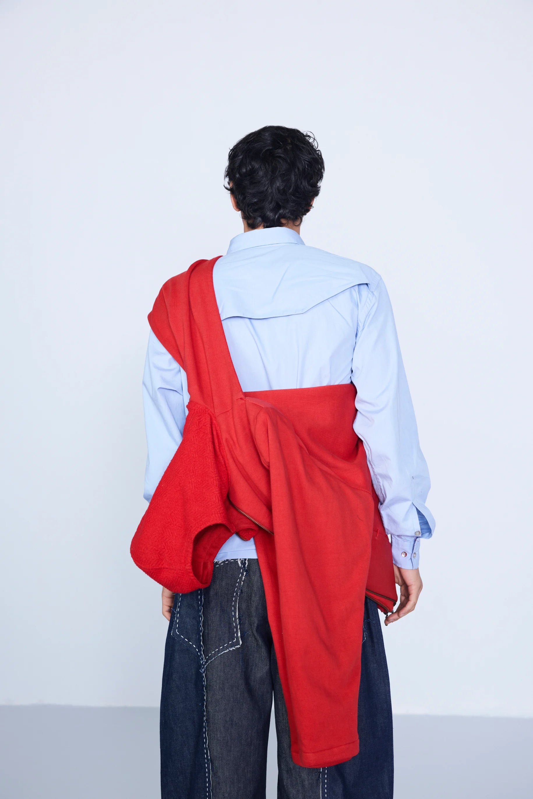 Crafted from 400GSM 100% combed cotton fleece with shoulder pads and a soft cotton lining. It features embroidered lapels and a convertible strap on the back, allowing it to be carried like a bag for added convenience