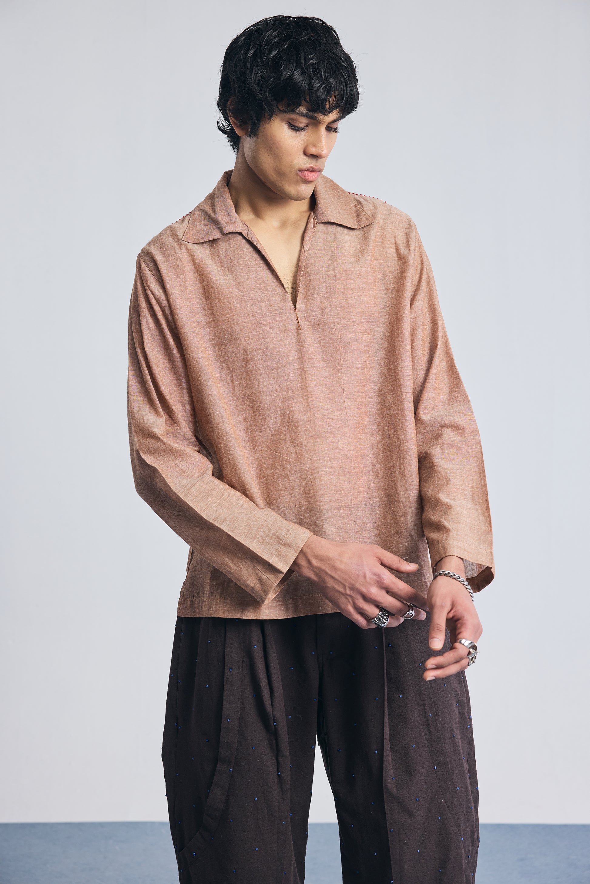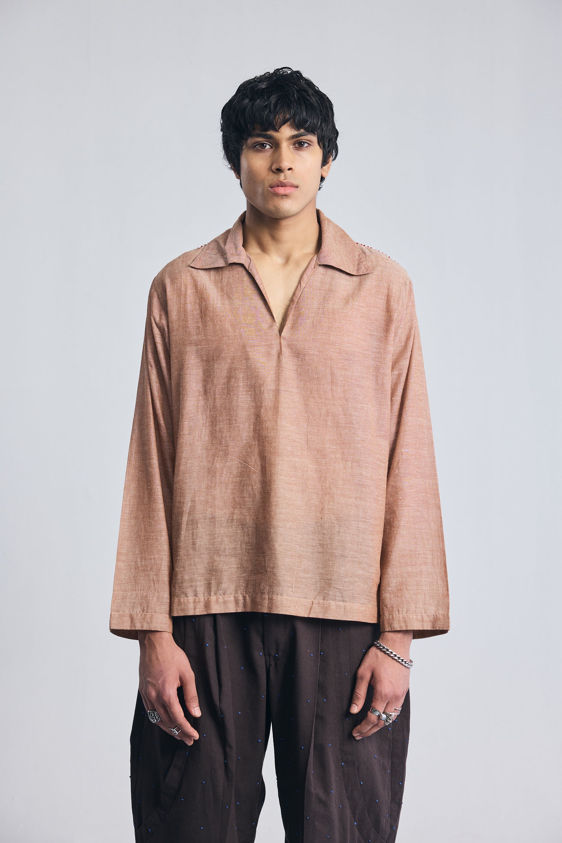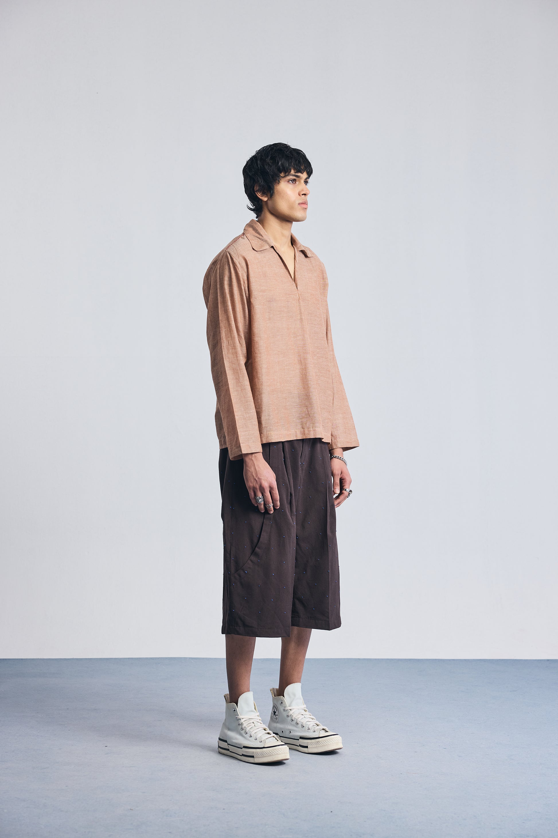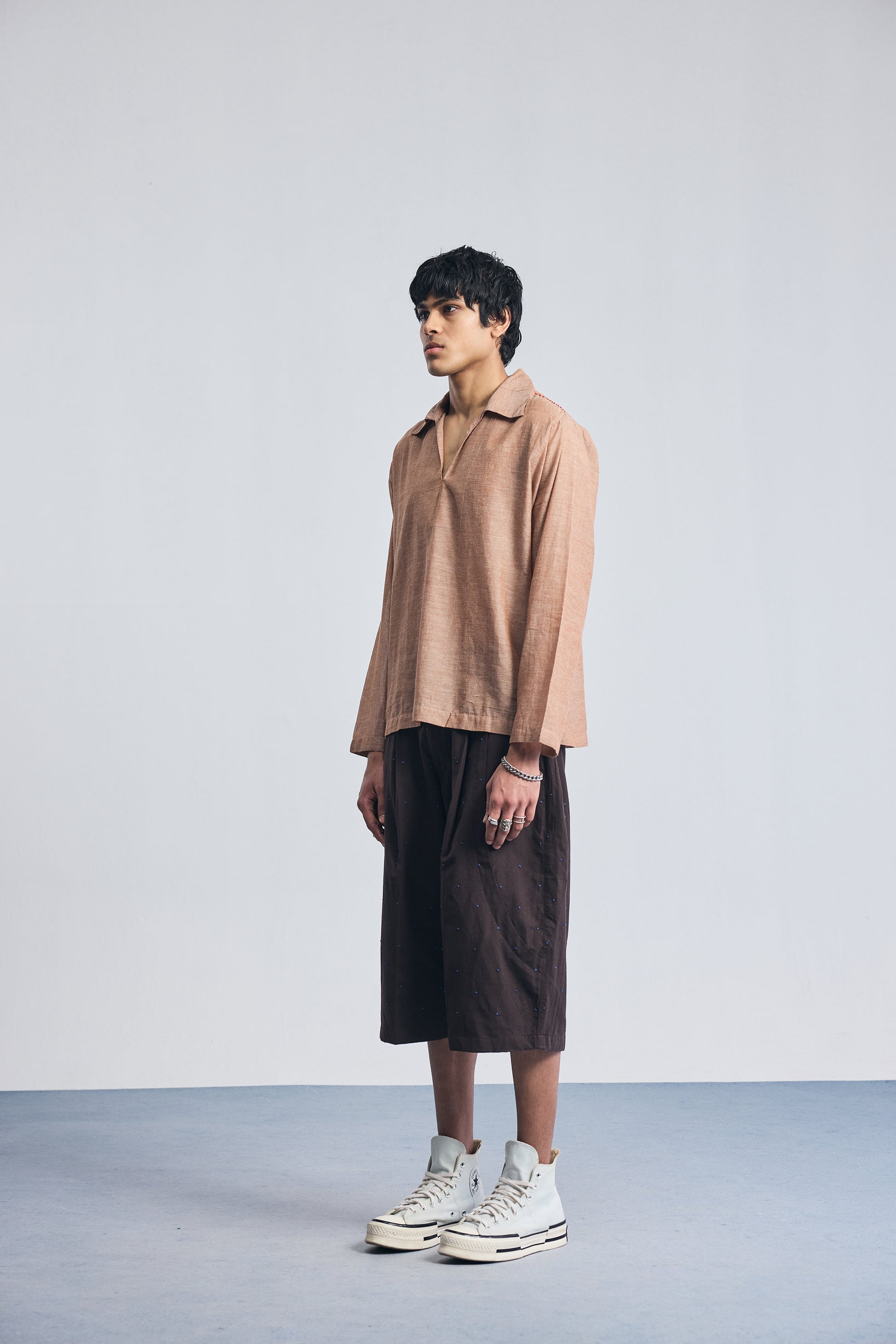 A shirt as soft as a mother’s touch. Woven from superfine cotton, this piece is crafted for quiet comfort — the kind you return to, again and again. Minimal on the outside, delicately embroidered at the seams — just like home.