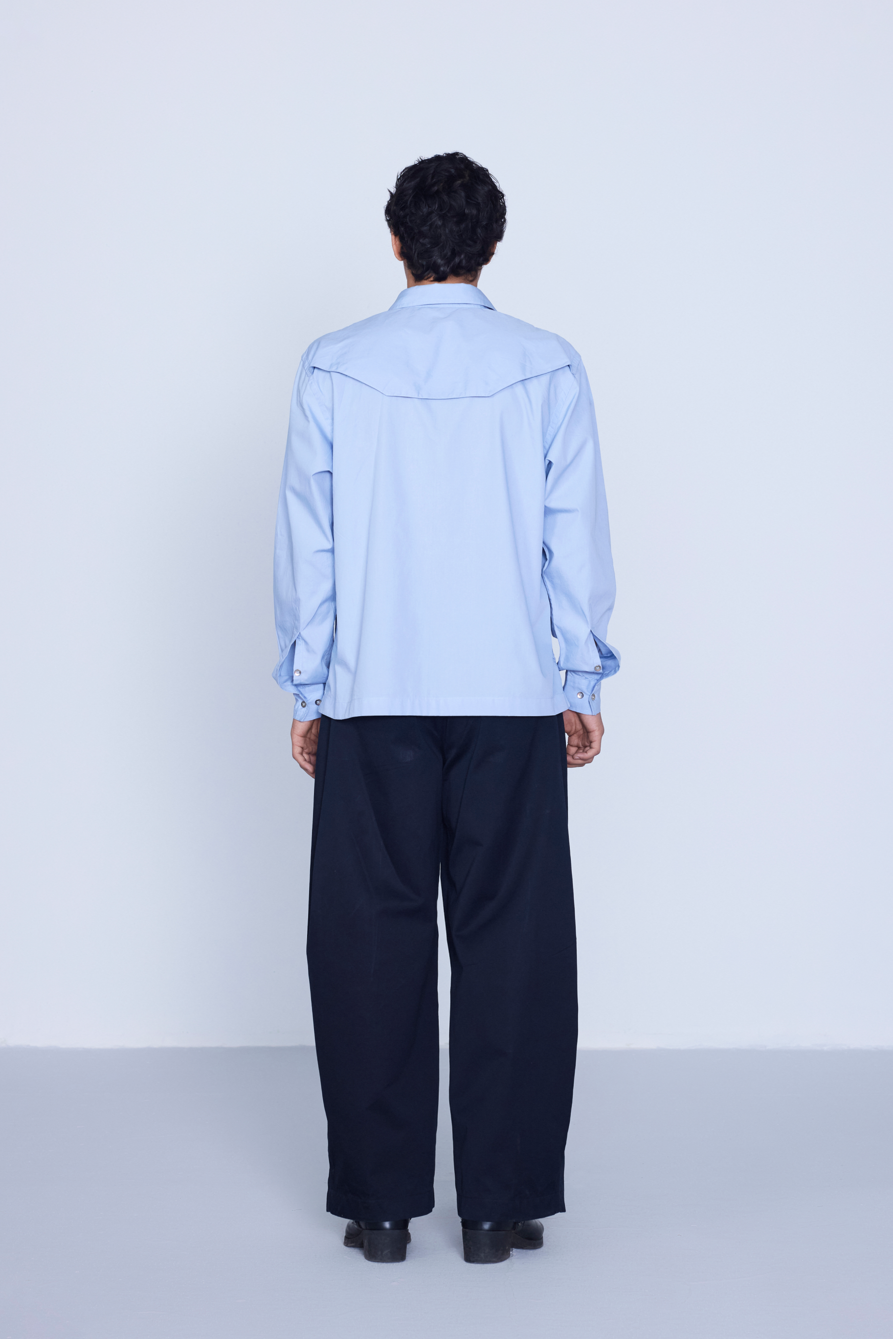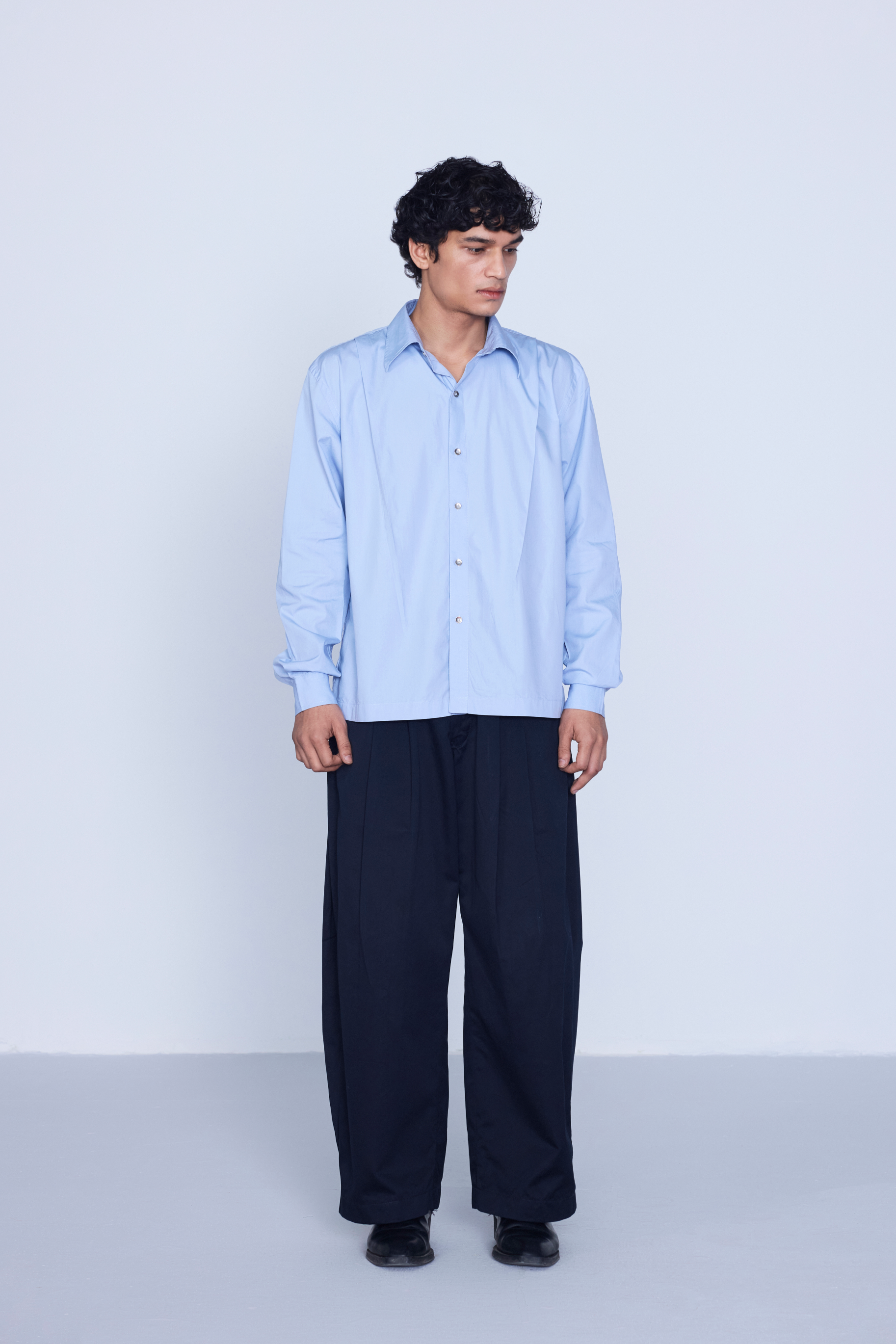Made from cotton-drill fabric, the Trousers feature front and back pleats that create a structured, box fit. The pleat details are a nod to Japanese carpentry, blending functional design with precision, offering both comfort and craftsmanship in every fold