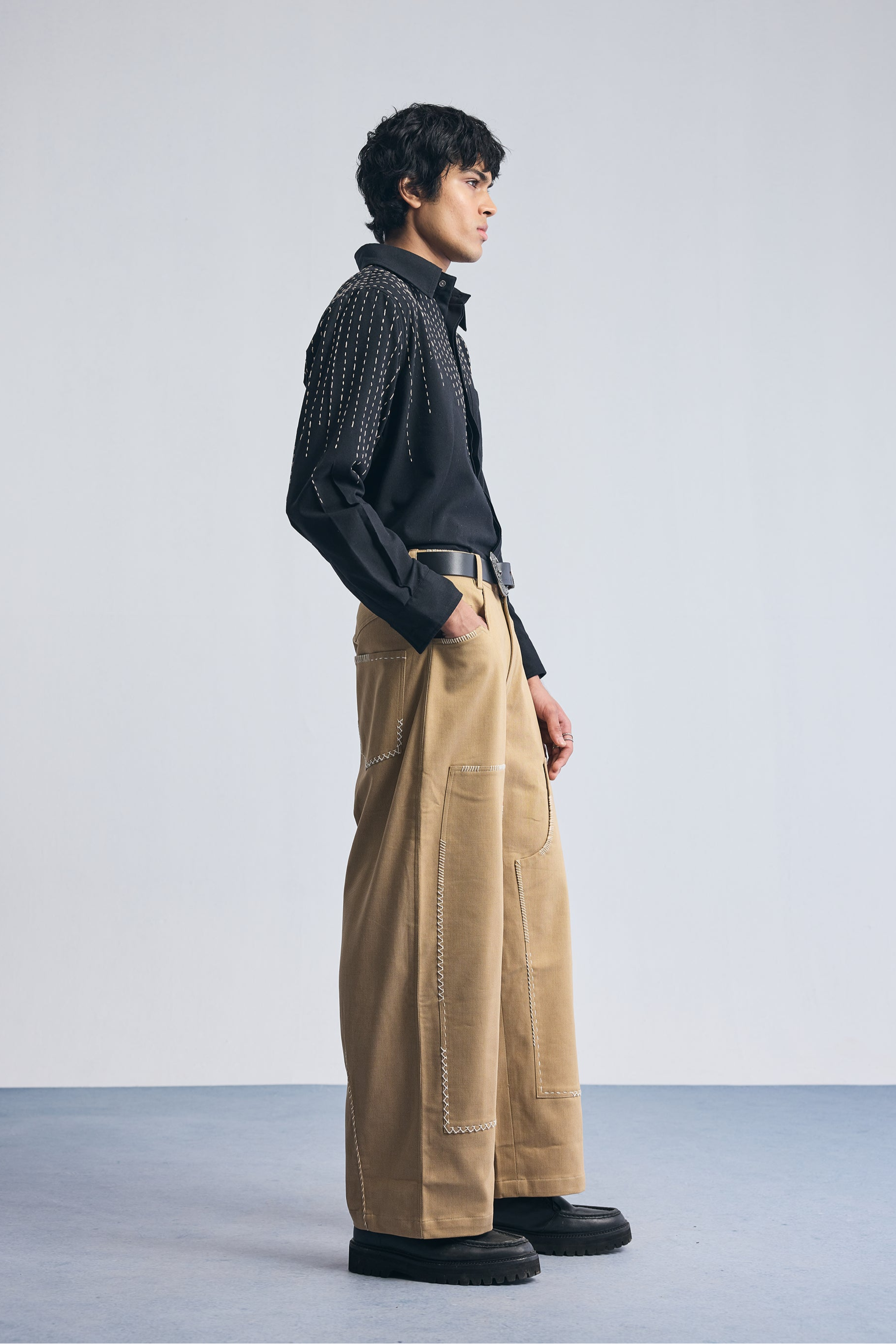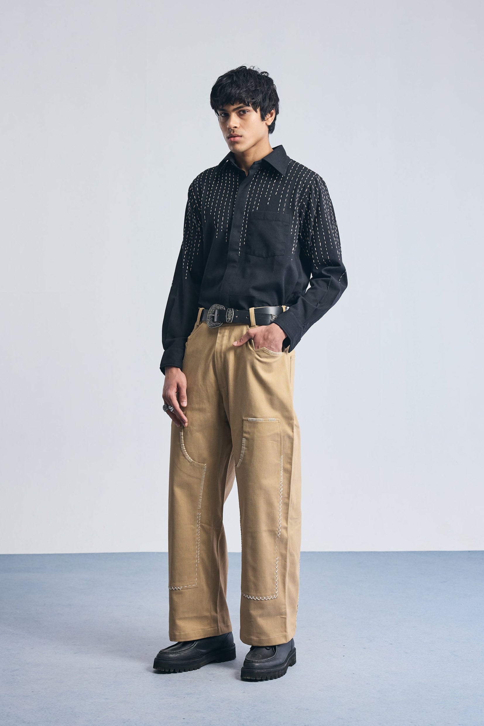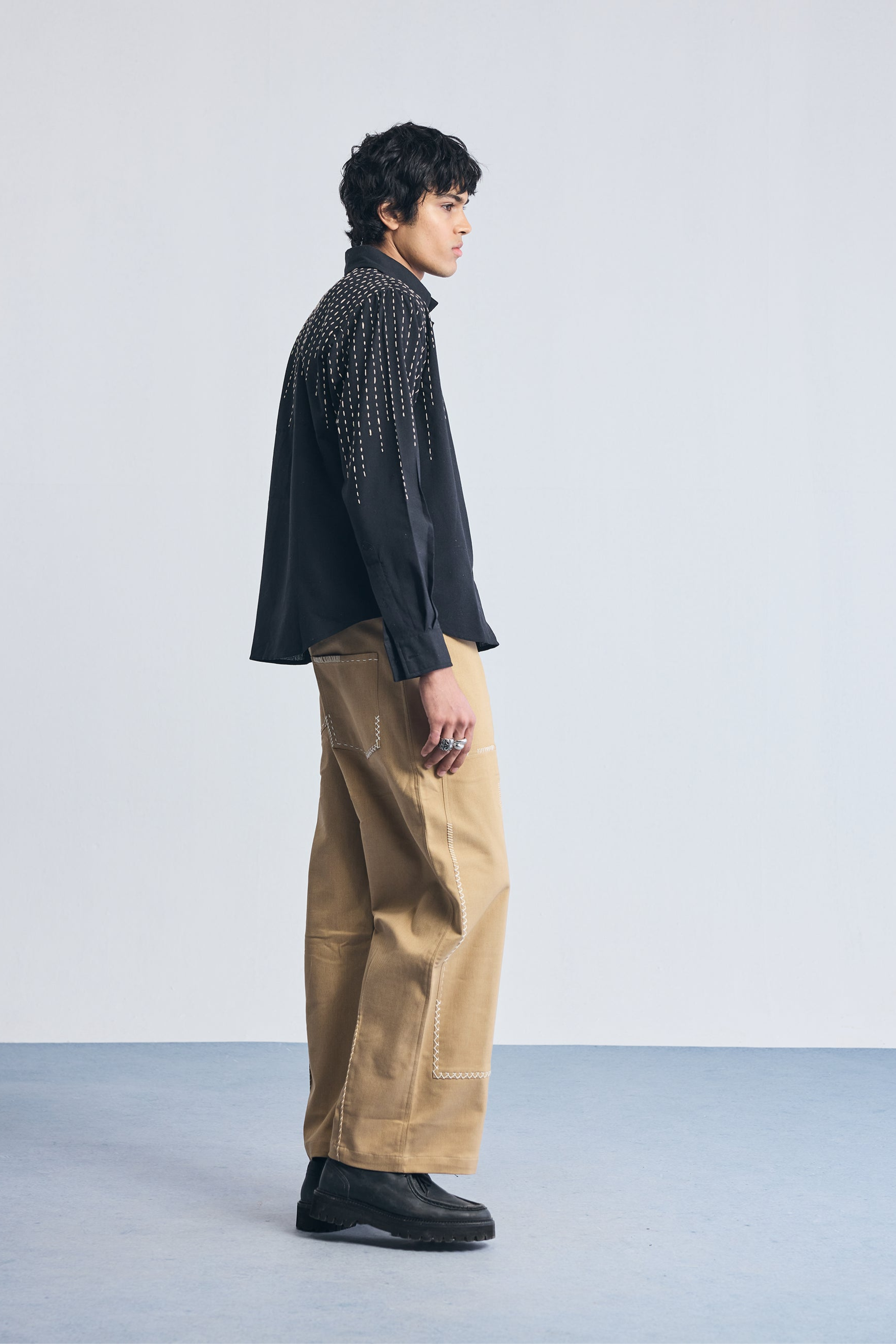 The Rainy Day Shirt captures the quiet mood of grey skies and soft drizzles. With embroidery flowing like rainfall across the chest and sleeves, each stitch reflects time, patience, and mood.