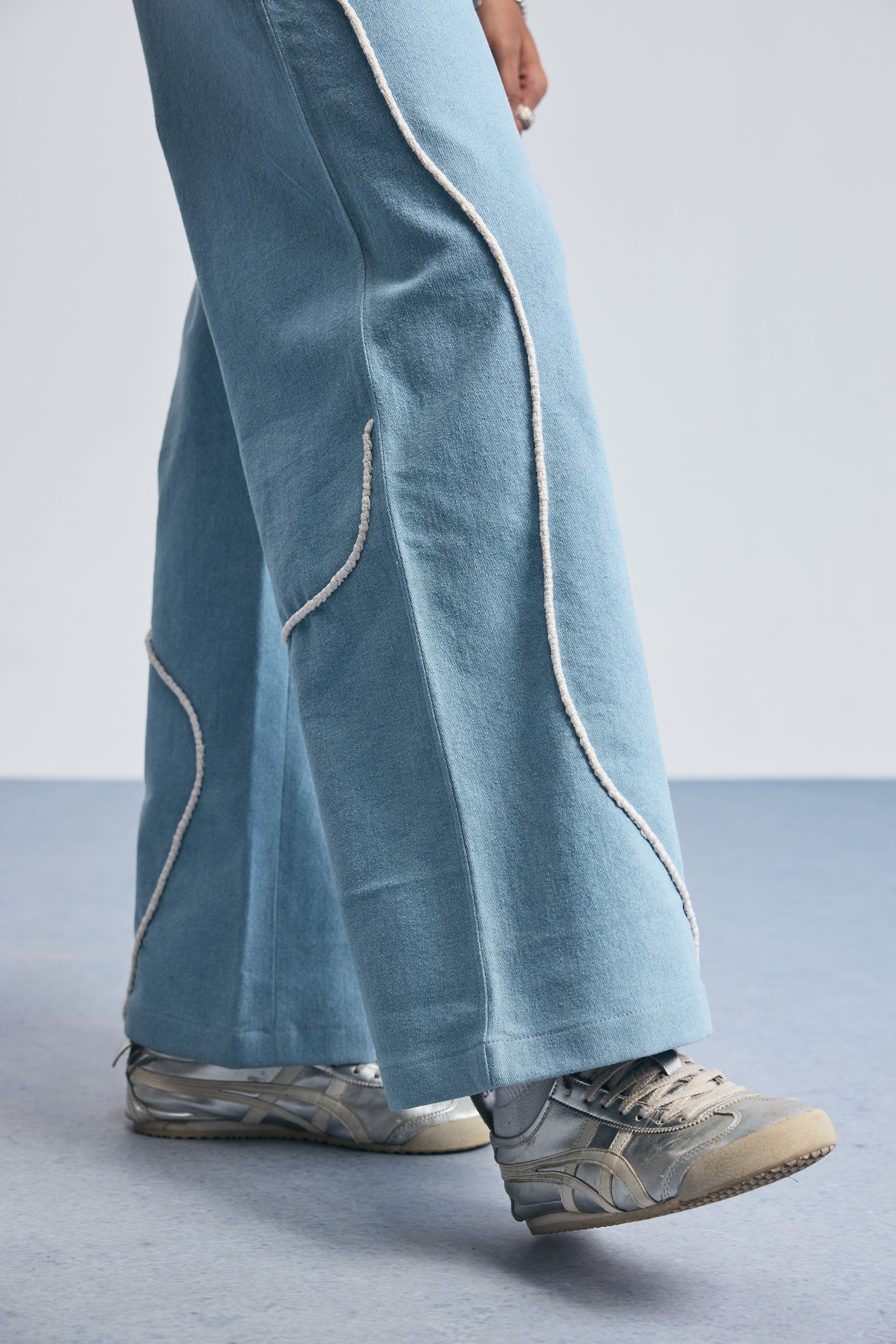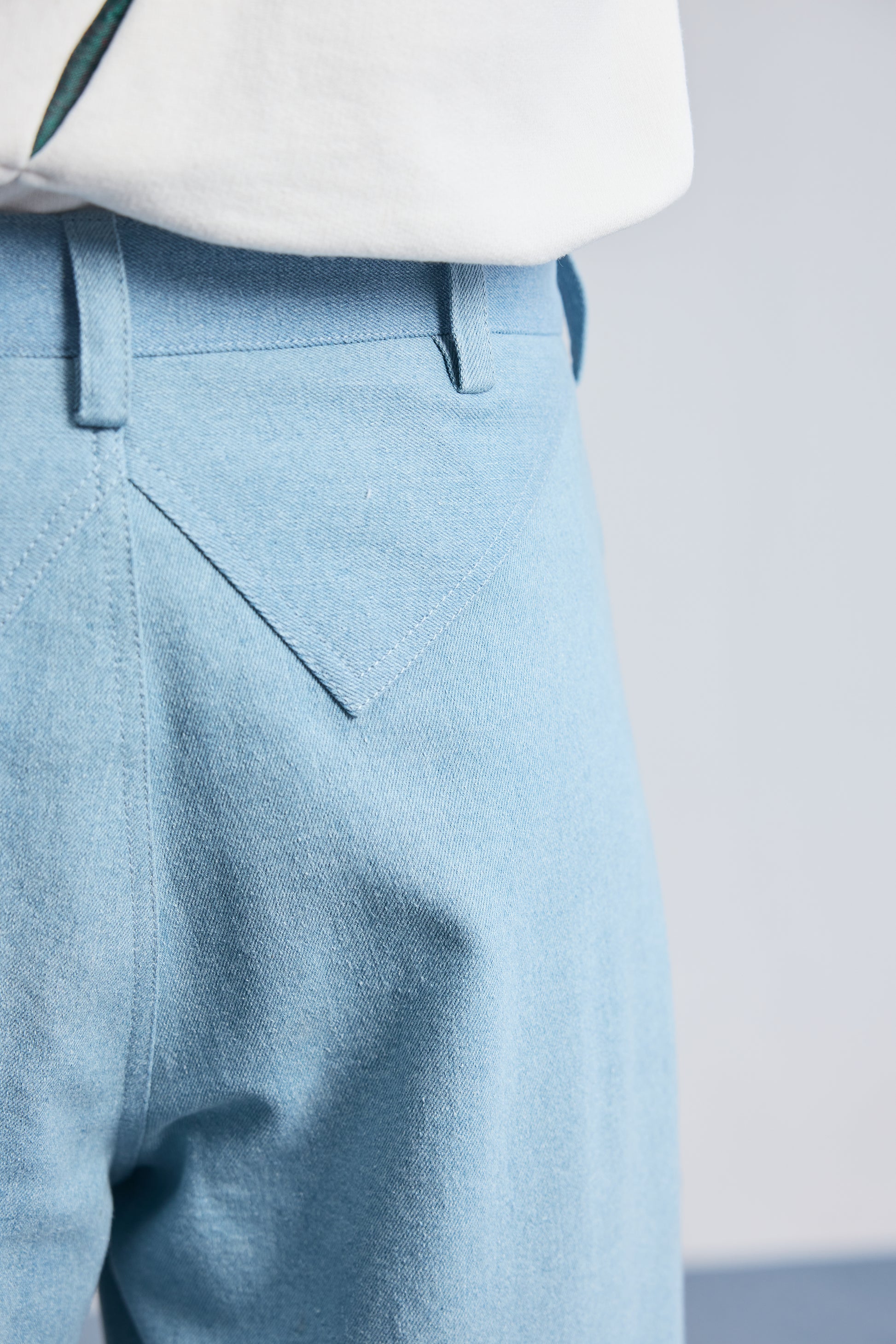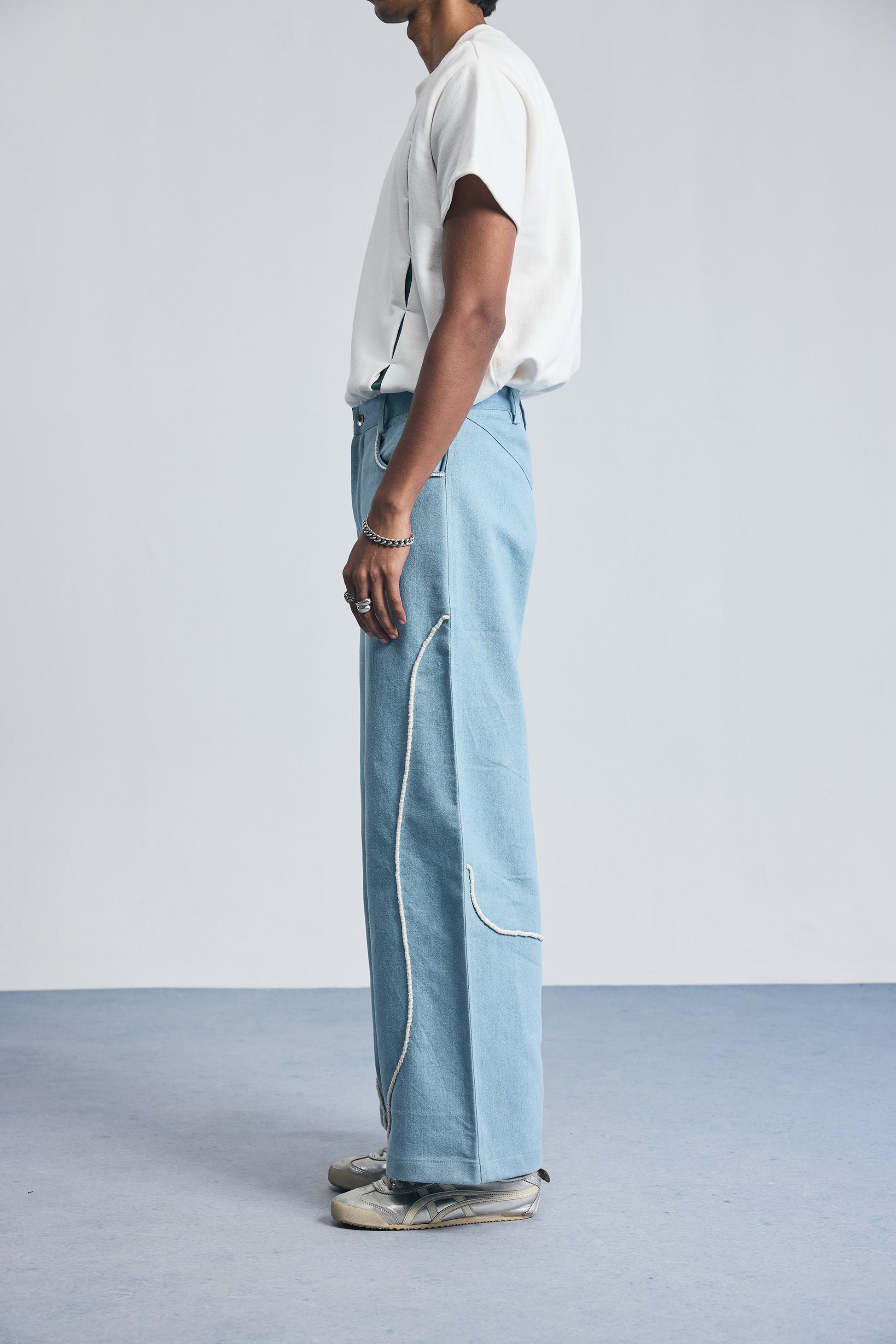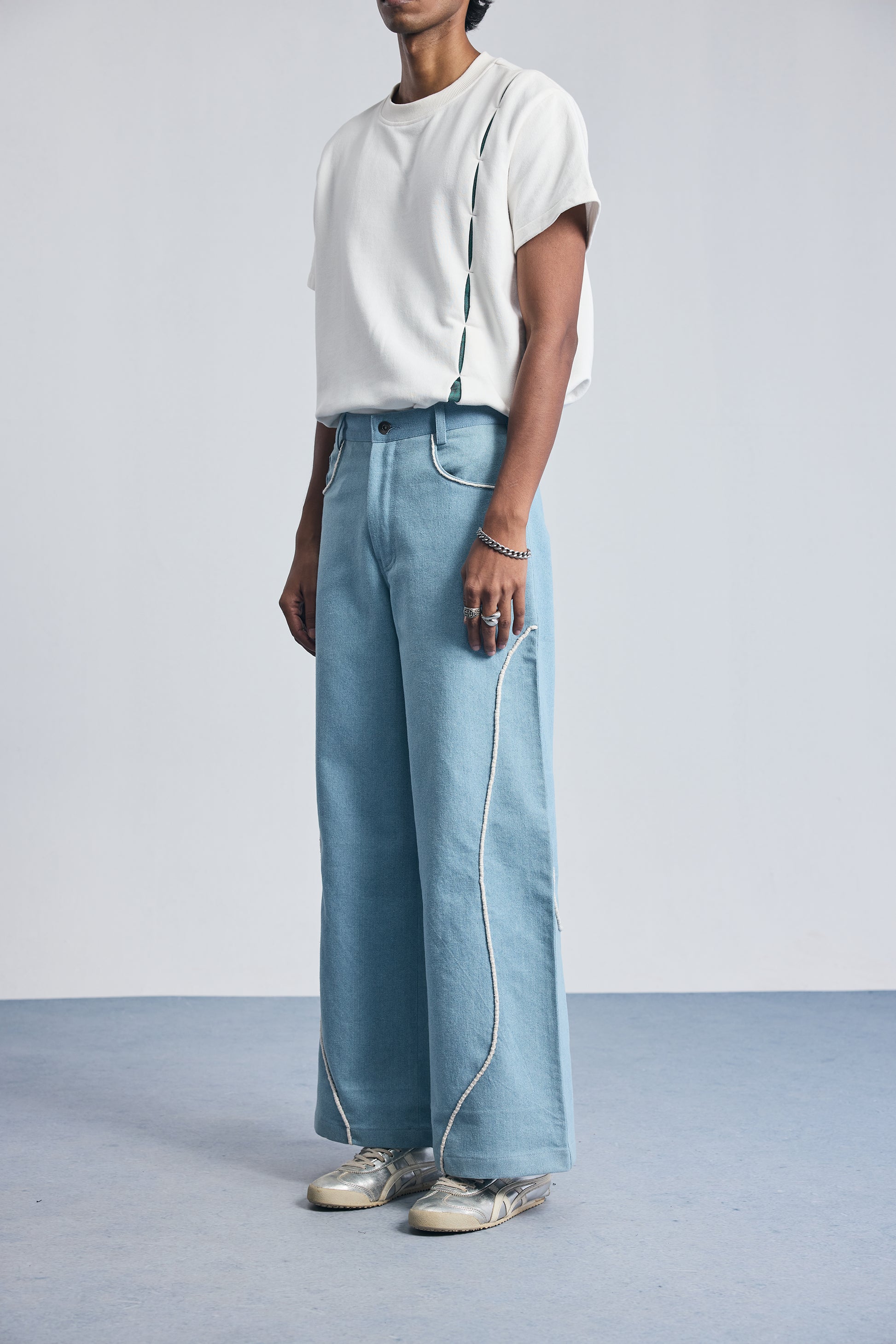 These denims hold the imprint of time. Sun-aged and softened by intention, the Roped Denims are not distressed — they’re considered. A rope-like embroidery winds its way around the seams, quietly echoing movement and memory. The fit is easy, straight, and forgiving — designed not to shape the body, but to move with it. These are denims for those who walk slower, but see deeper. Meant to gather scuff, bend, sunlight — and eventually, stories.